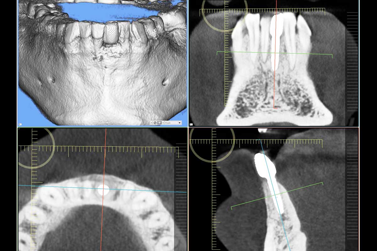 Follow-up CBCT scans taken at 4 and 9 months demonstrated stable bone regeneration and preservation of the ridge contour in its natural formĀ on the buccal side where the membrane was placed. Deeper placement of the implant initially would have been better. Satisfactory closure of the initial gingival recession was achieved despite minimal mucogingival intervention.